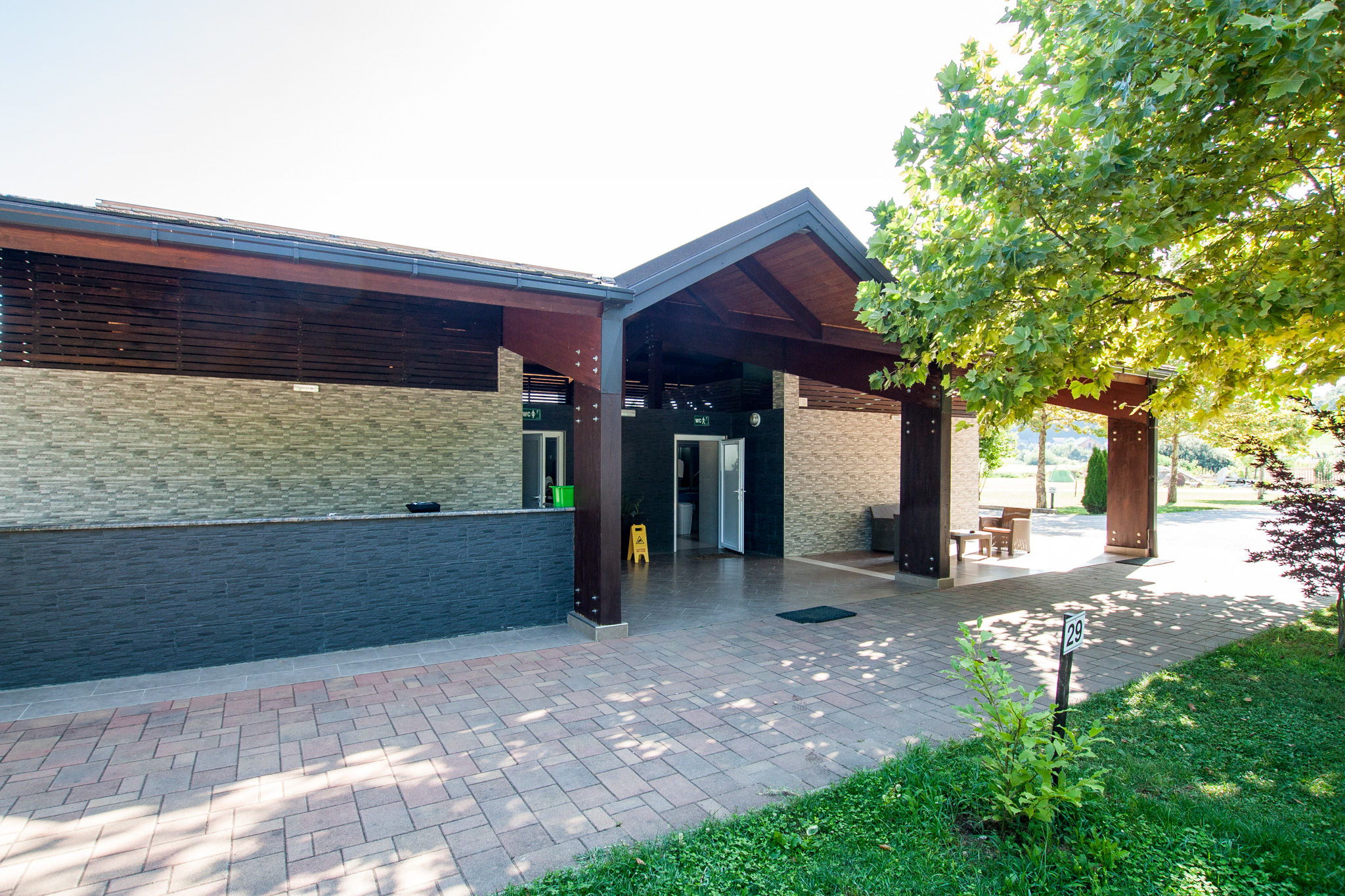 The site is very nice. There are marked out pitches of various sizes and an open area available too. The facilities are modern and very clean. The restaurant provides a wide range of dishes at very reasonable prices. The bar bill is very reasonable 🙂