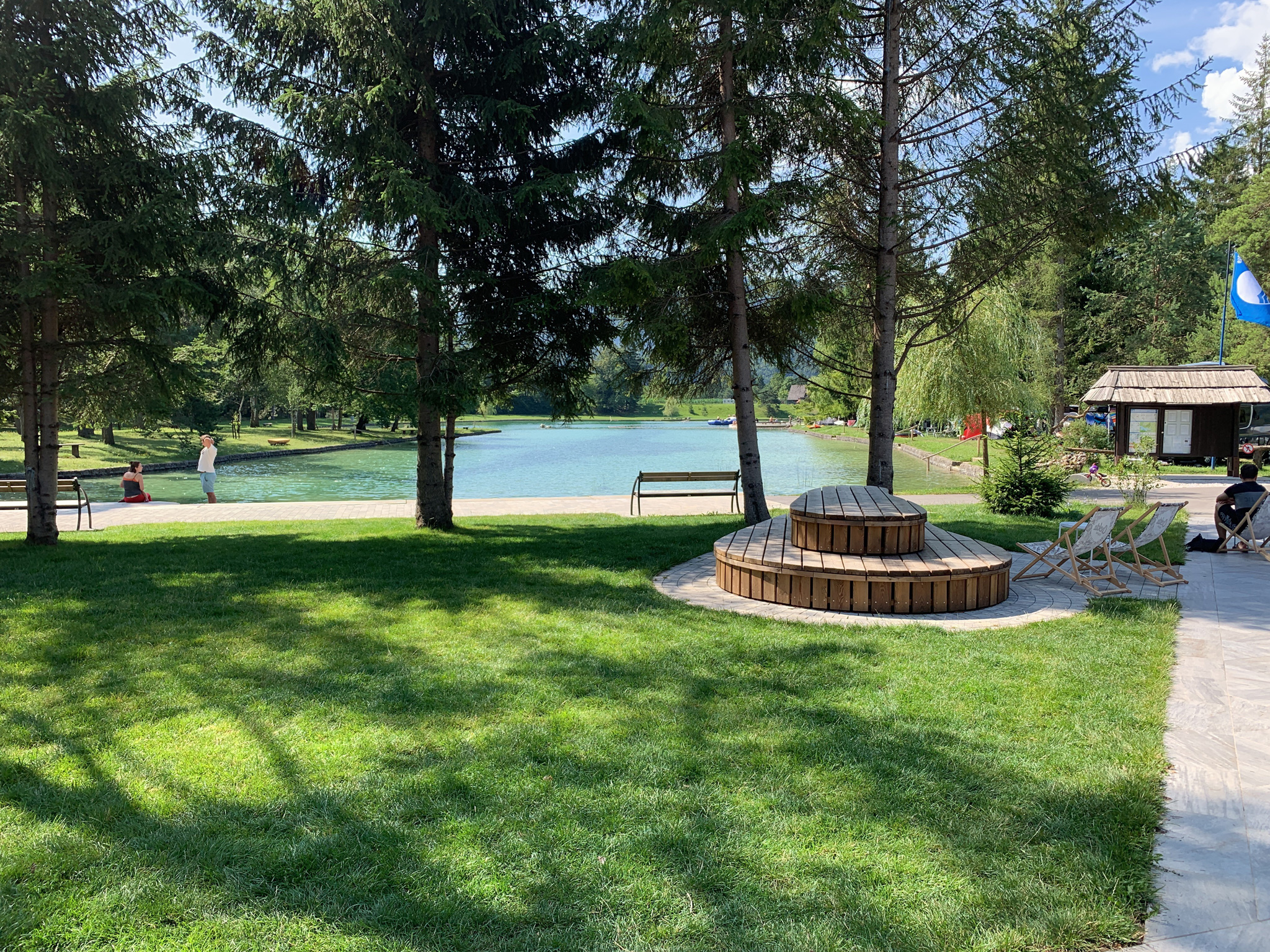 The swimming lake is huge.