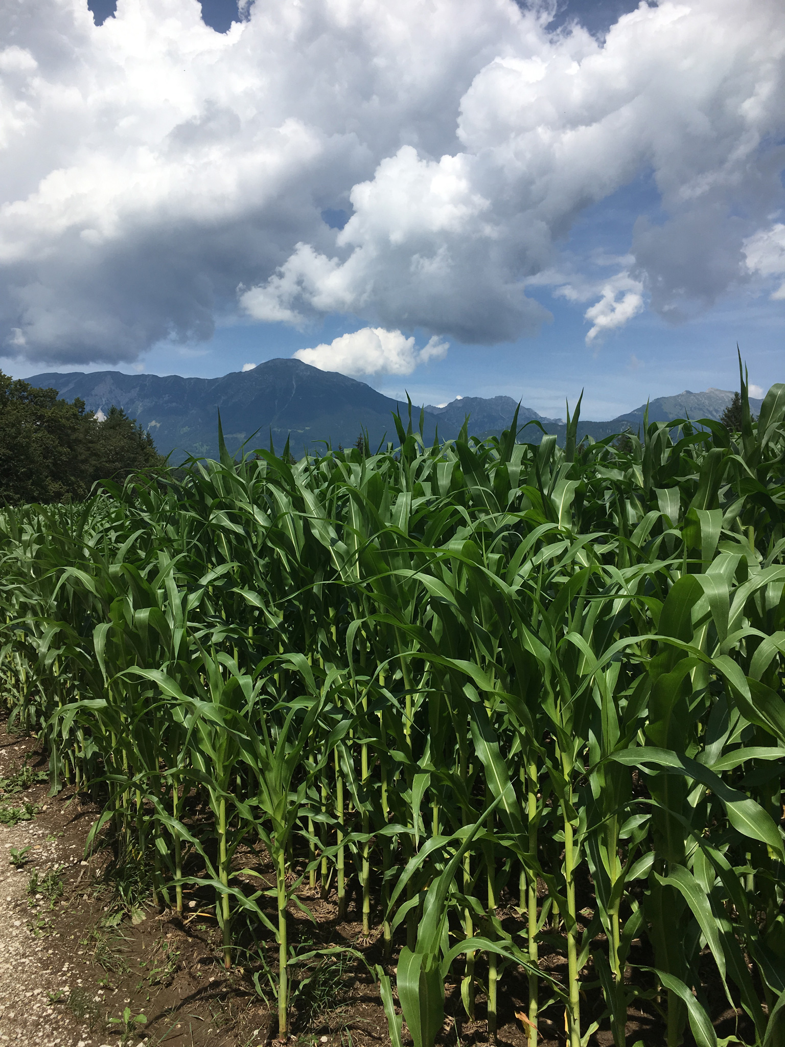 After lunch we made our way into town via the clearly signed footpath surrounded by corn and the backdrop of mountains. Due to the very heavy rain the night before there were quite large puddles to avoid on the footpath. The footpath leads to quiet local roads that were quiet until entering Bled.