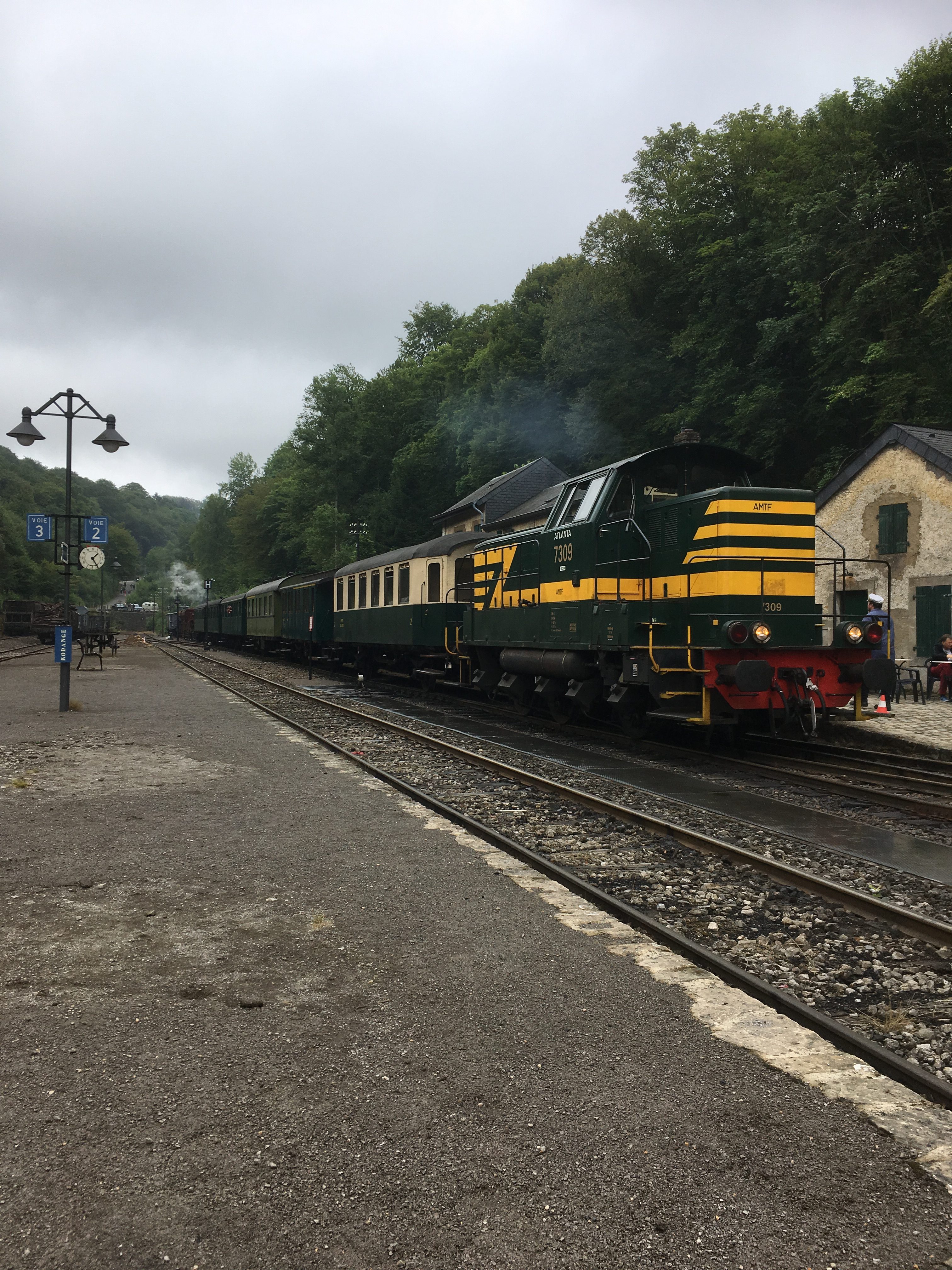 Train 1900 takes passengers on the 8 km ride from Fond de Gras to Pétange or vice-versa. We opted for the first class carriage. Although the scenery along the journey wasn’t much to write home about, for those of us old enough to remember steam rail travel, it brought back fond memories.