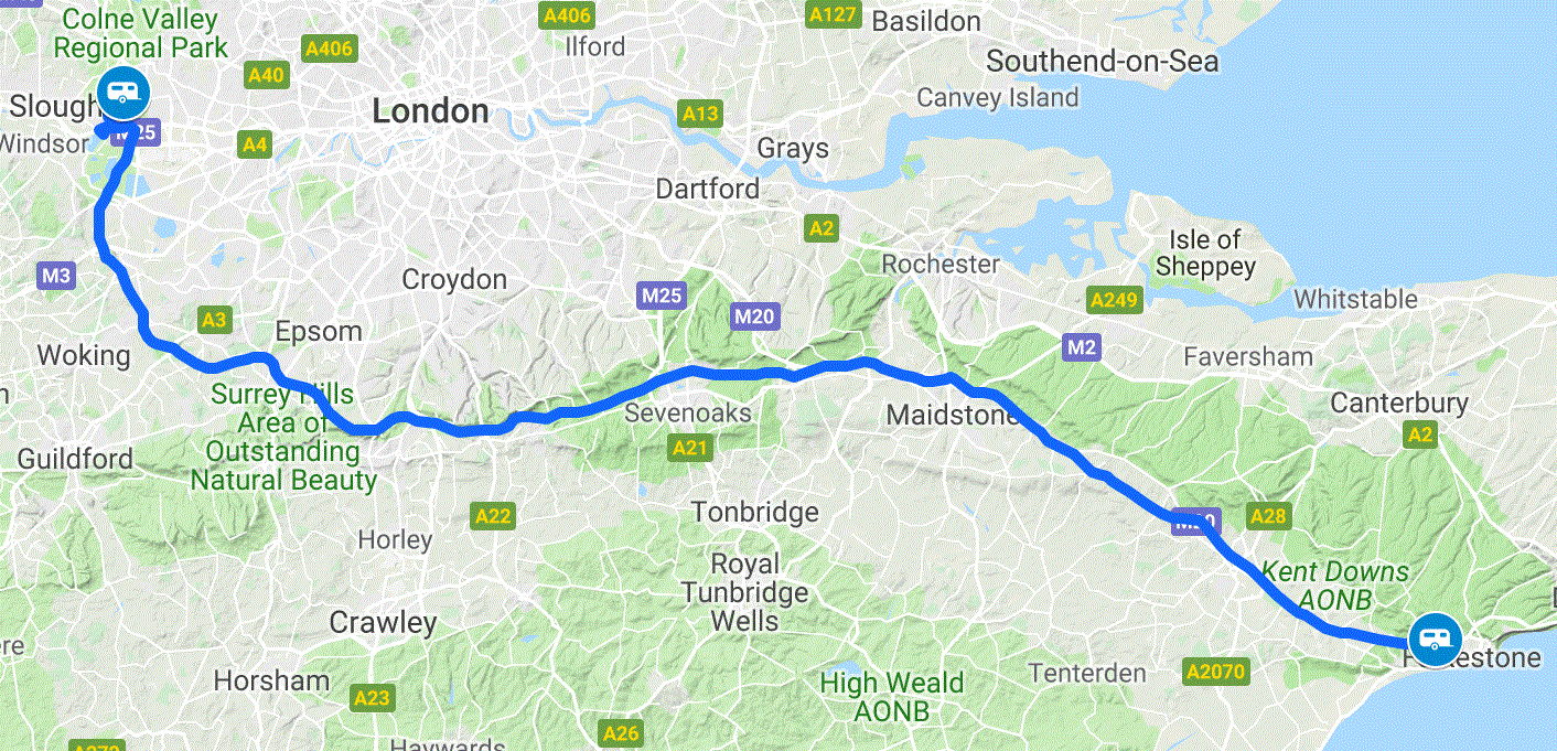 Progress was good in light traffic and with no holdups. We were allocated an earlier crossing than we had booked and within 45 minutes we were back to driving on the left on the way to Kims’ parents place in Iver, Buckinghamshire. This will be the vans storage place for a few weeks.