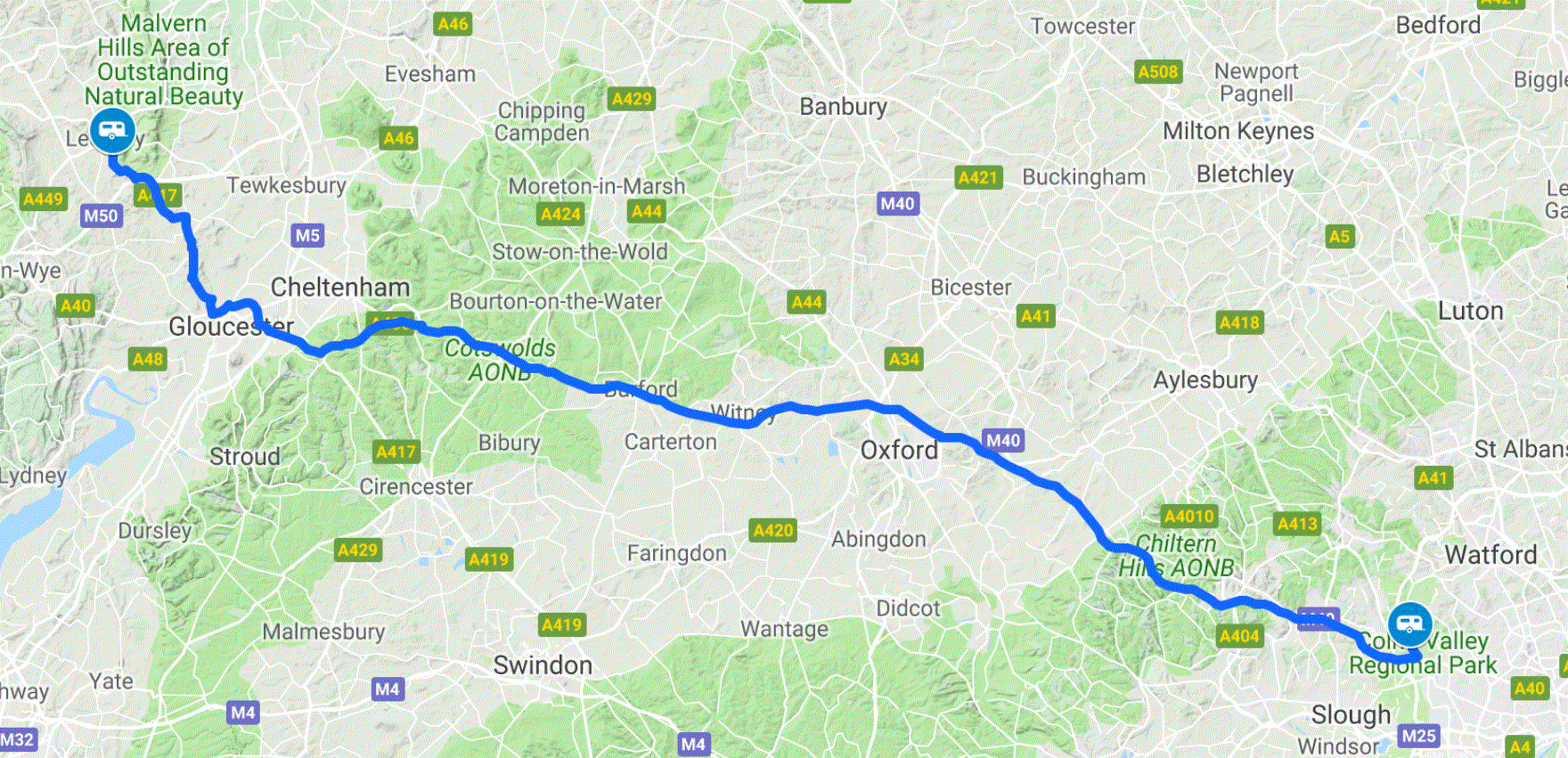 We’re Off! The tour begins and we set off from Denham in reasonable weather for The Elms – Ledbury, a Camping & Caravanning Certified Site.