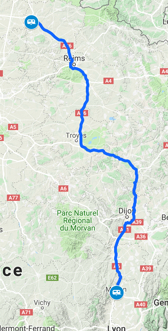 The ferry crossing courtesy of P&O was smooth & on time and we made good progress on the autoroute system down to Camping du Viviers aux Carpes, near Saint Quentin. This is a Camping Card site and cost €17 plus local taxes for the one night we stayed. We wandered around the town and found a bar then returned to the van as darkness fell.