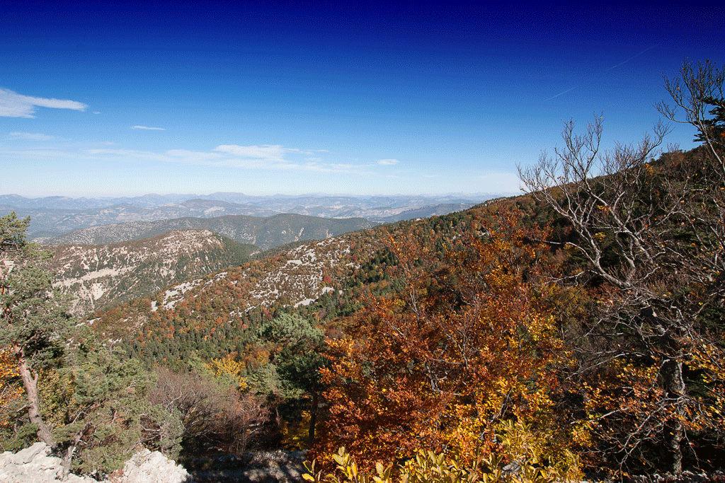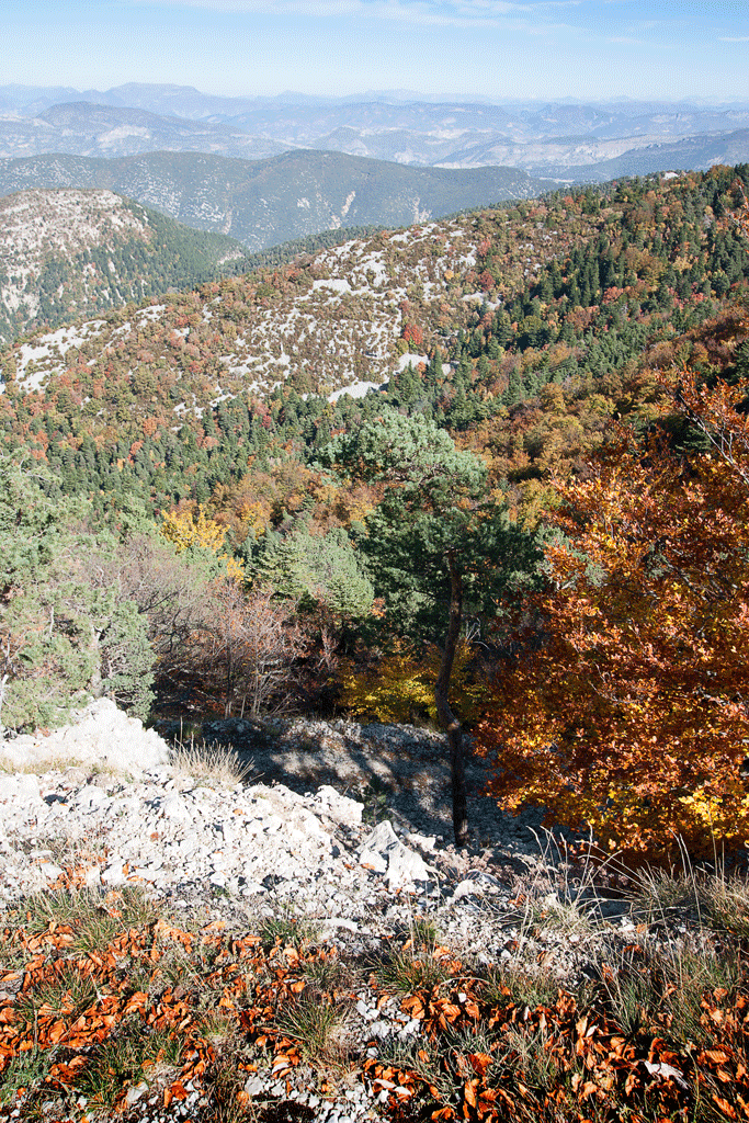 Today the plan was to drive over to Mont Ventoux, the famous mountain in Provence, topping out at 1912 metres above sea level. The mountain has been climbed many times by the riders of the Tour De France, with stage finishes there numbering ten. The wind at the top has been measured at over 200mph at times but we were lucky as the wind was relatively calm, and the temperature was a balmy 8 degrees as we reached the top. The temperature as we started the climb was 22! On the way up we enjoyed some excellent autumnal colours of the trees.