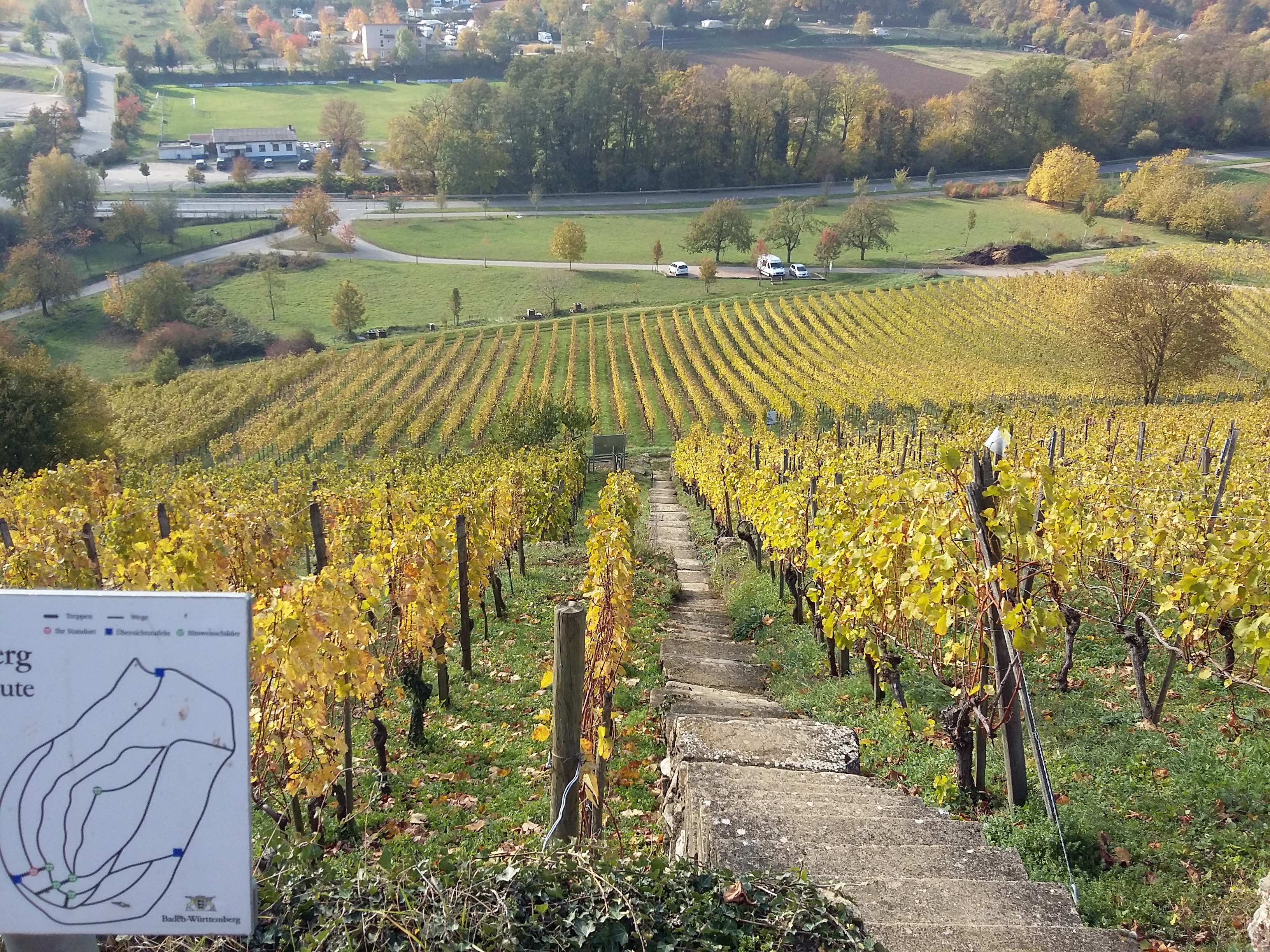The trail made a steady climb through endless vineyards whilst enjoying the views below. Information boards, in German, provided details of the history of the vineyards and the purpose of the trail and the Castellberg Project.