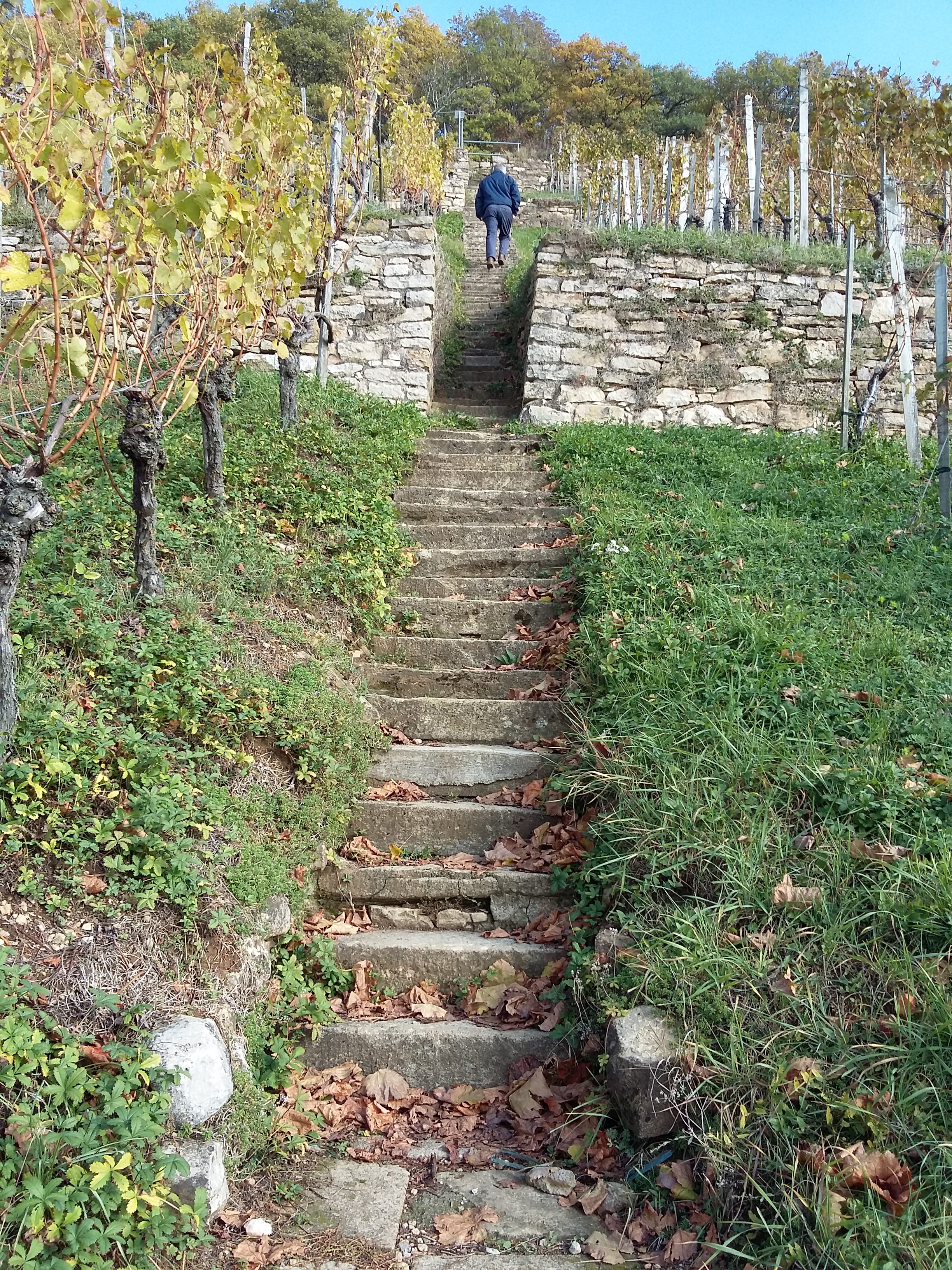 Well preserved historic dry-stone walls and steps in the vineyard