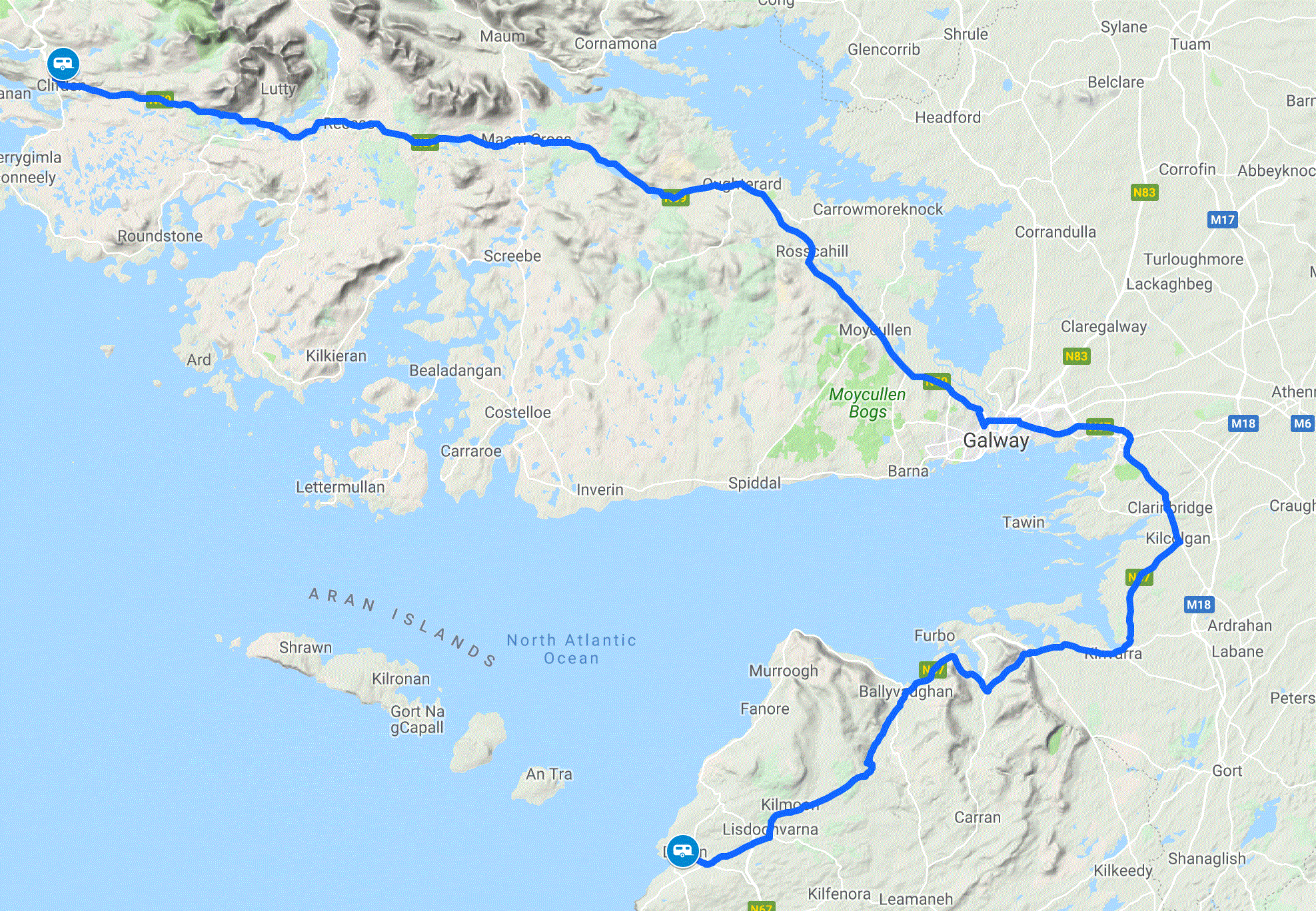 As it turned out we enjoyed the detour. We certainly wouldn’t have seen the Cathedral otherwise. After then passing some of the National University of Galway campus sites and the many students on foot, we made it back on the N road out of the city and South Galway.
