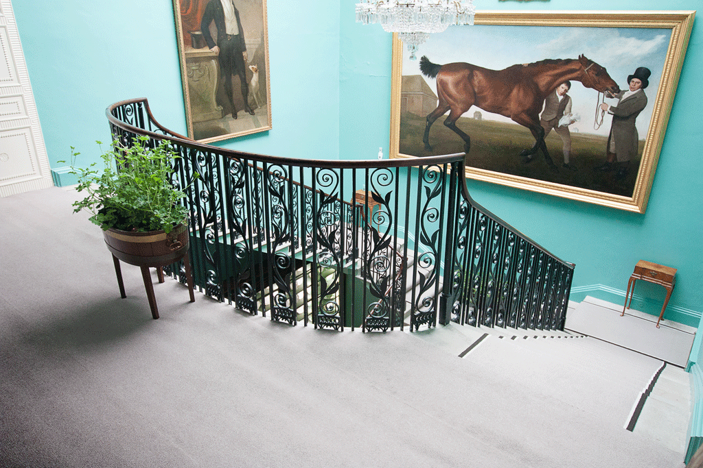 This beautiful staircase was designed by George Dance and the superb painting by George Stubbs, depicts Hambletonian, a celebrated race horse, after winning a race at Newmarket racecourse in 1799. It is just one of many pieces of artwork which are on show throughout the house.