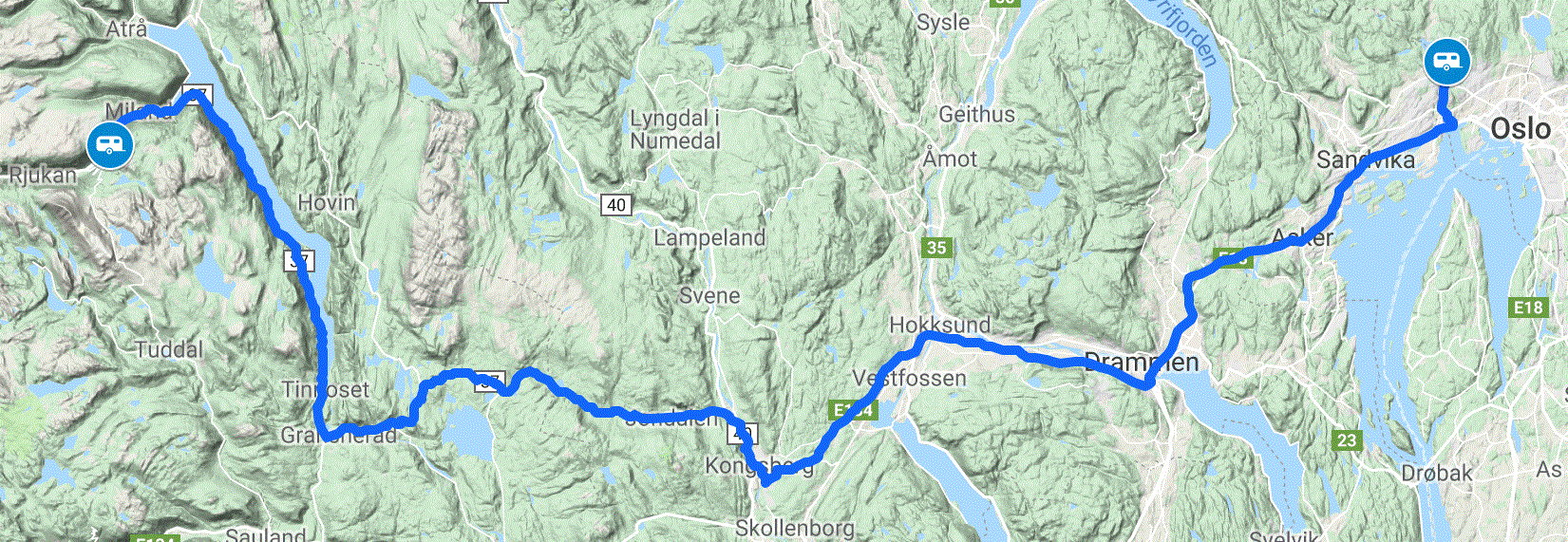 We left Rjukan Hytte & Caravan Park this morning bound for Oslo. We didn’t know exactly where at this point, we would choose somewhere nearer the target.