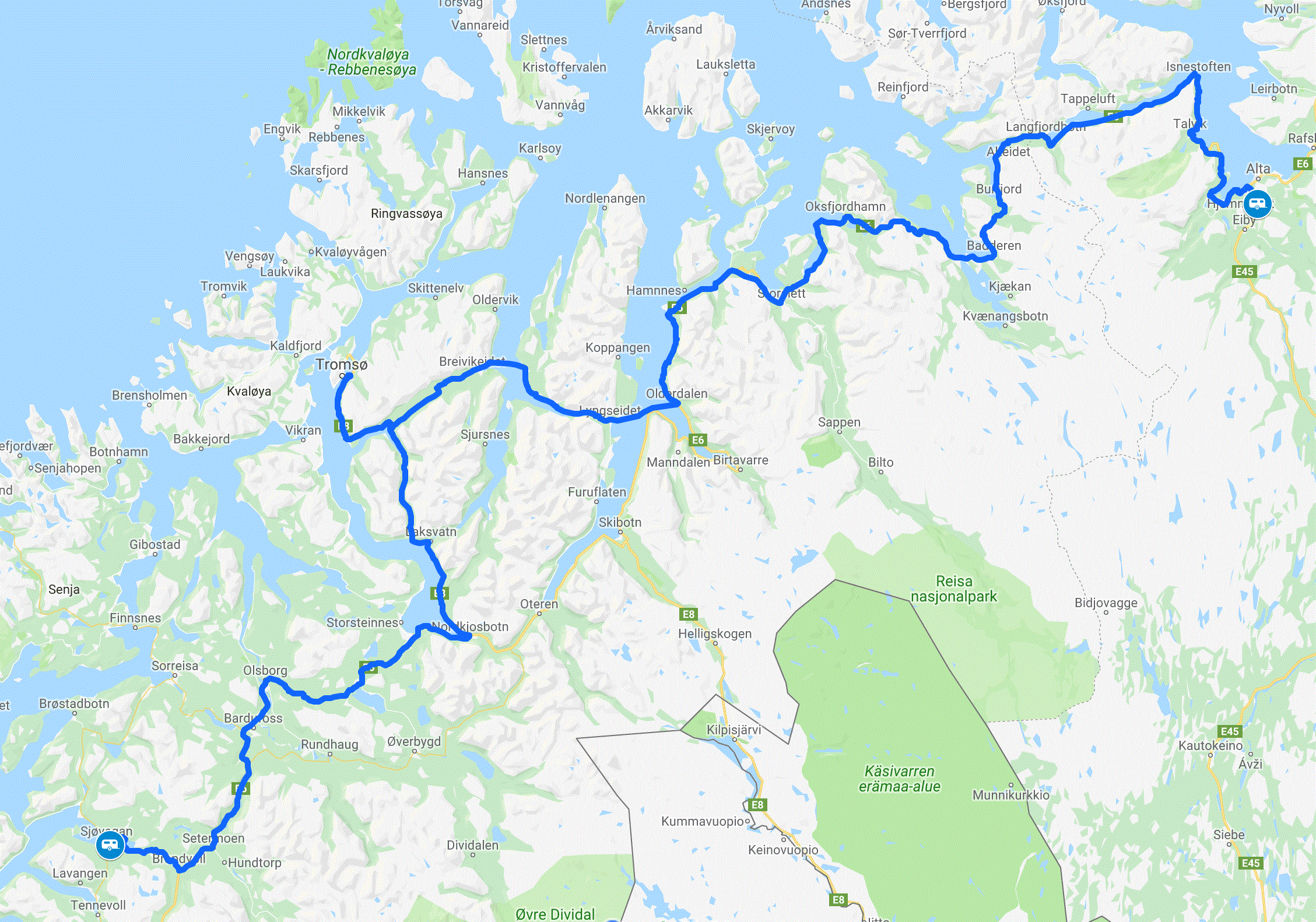 Our plan was to head to Tromsø, a city on an island of the same name. In order to cut down on the mileage, and to give Ray a well deserved break our journey would include a couple of ferry trips.