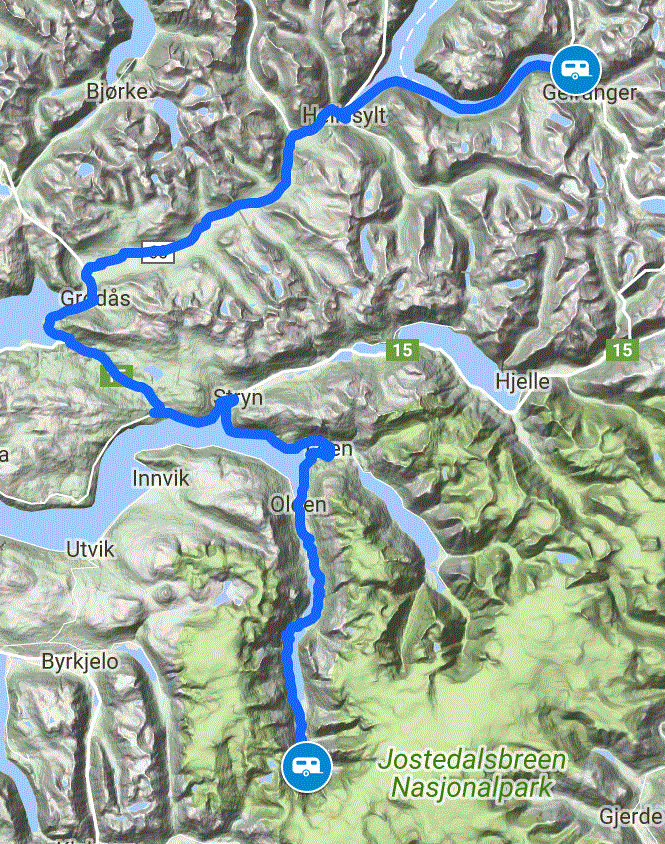 In 2012, Paul & I had left Geiranger via the ferry cruise to Hellesylt and very much enjoyed the experience. As it would avoid having to tow a near 1.5 tonne caravan out of the fjord Kim & I decided that this would be the way to go again. The cost for the one hour ride was a little eye-watering, 1580NOK, but we went for it anyway.