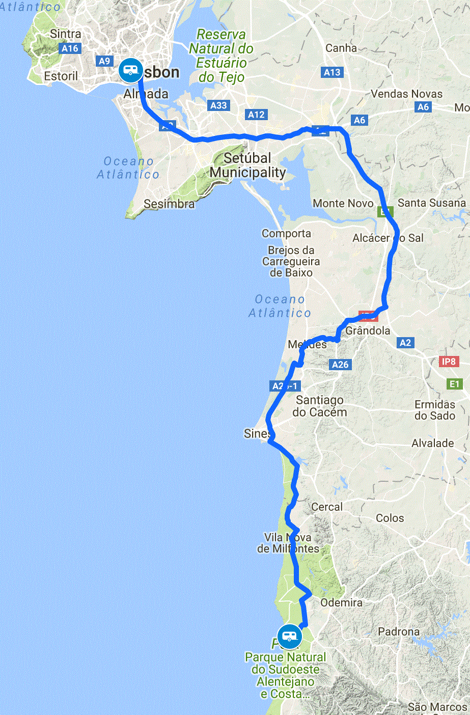 Today we packed up our gear and got ready to tow the 215km route onward to Lisbon.