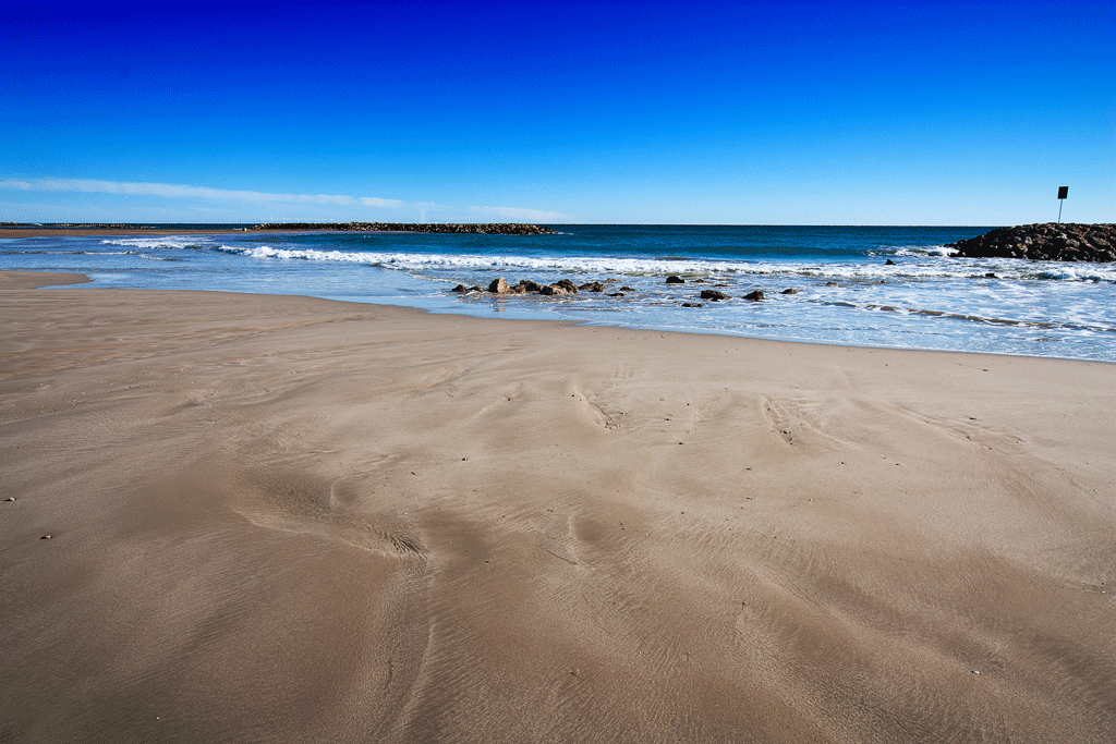 We headed towards the wide promenade and the sea. The waters were calm and the sandy beach looked so inviting. The place seemed deserted, which was just how we liked it 🙂