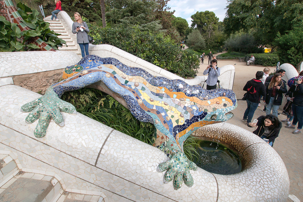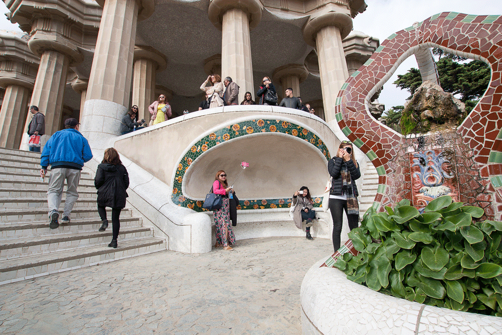 It was undergoing some major improvement work, but we were still able to take in the views over Barcelona and the undulating bench seating decorated with tile-shard mosaic, planned by Josep M. Jujol.