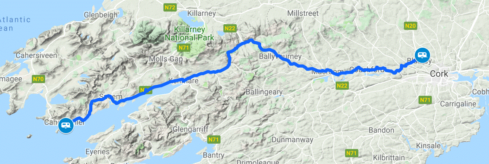We left Blarney and travelled towards Mallow, then Rathmore and onto Killarney. After passing through the larger town of Killarney, we found ourselves in the beautiful surroundings of Killarney National Park.